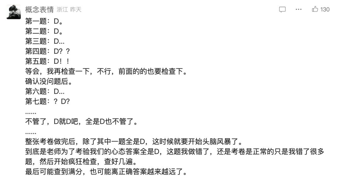 专门出了一张答案全选D的考卷——