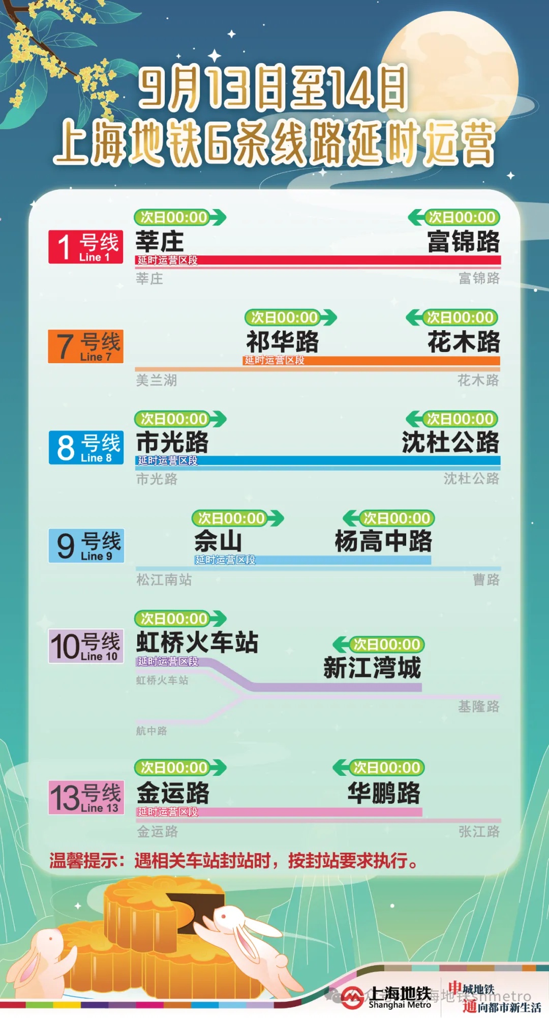 为应对节前客流出行需求,今晚,1、7、8、9、10、13号线将常态实施延时运营方案。