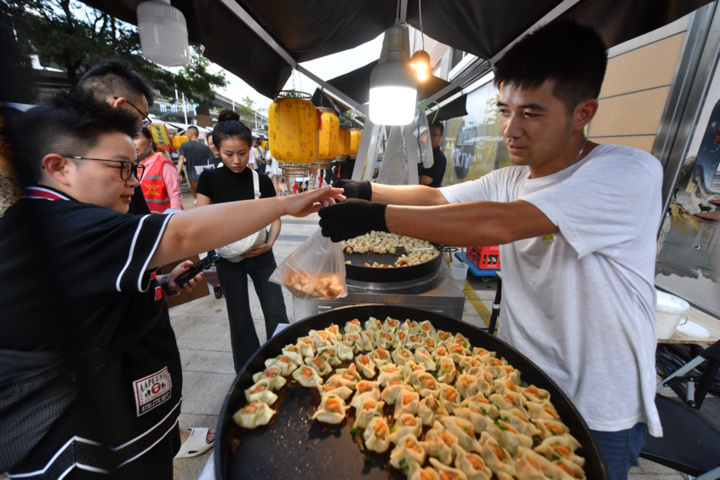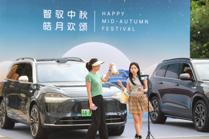 在南京工作的重庆小伙赵伟这个中秋节没有回家。手里捧着一盒冷锅串串在美食集市上走走逛逛。“虽然还是少了点家乡的味道,但是我已经拍了照片传到了微信群里了,一样也是团圆了。”赵伟说。