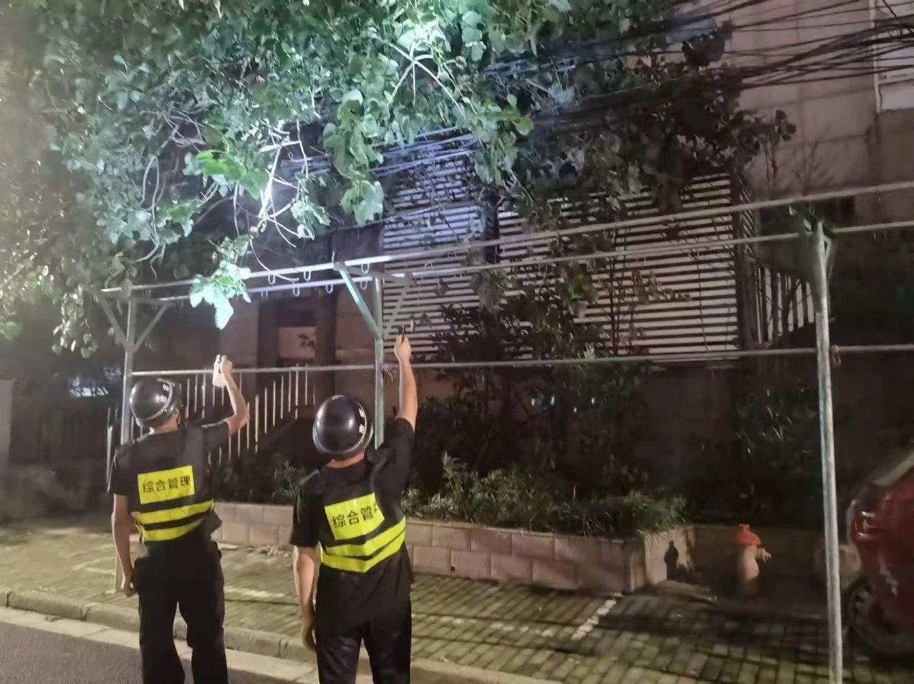 综合网格工作站与各居民区密切联络,对巡查发现的小区雨棚车棚破损、窗台堆物、飞线充电等隐患情况及时采取措施,解决到位。