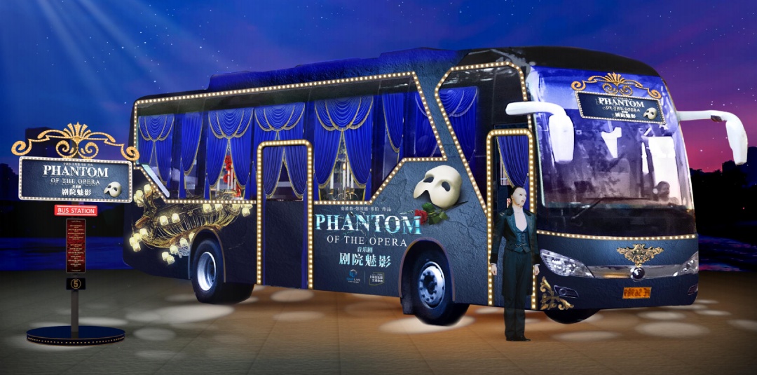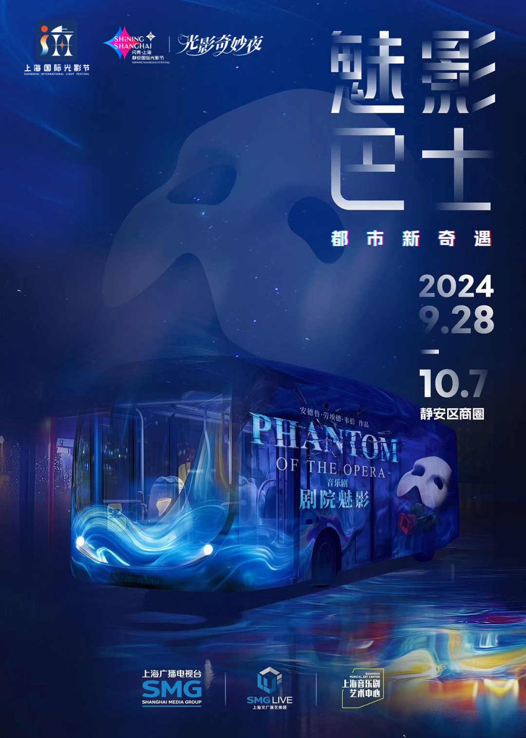 全球首辆承载着国际戏剧IP的光影奇妙巴士也将在光影节期间穿行于南京西路和苏河湾两大光影展区,成为《剧院魅影》巴士体验场景的全球首秀。