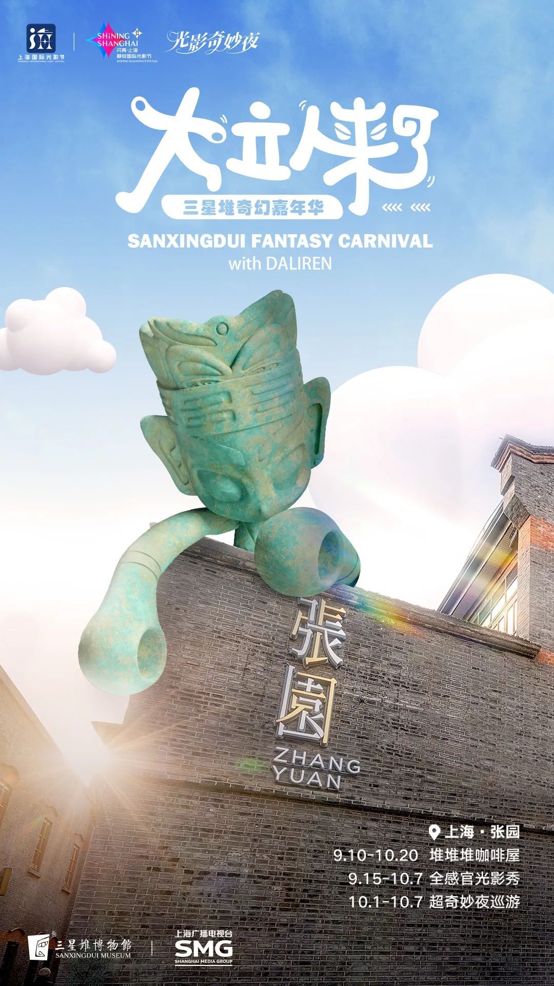 全球首发的“大立人来了·三星堆奇幻嘉年华”文化体验活动于9月10日在静安区张园开放,多角度、沉浸式展示古蜀文明与海派文化碰撞下的艺术,营造光影与文化融合的消费场景,让“大立人”从上海出发,闪耀国际视野。(点击此处查看此前静宝报道)