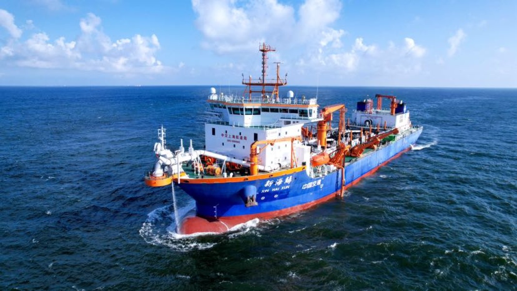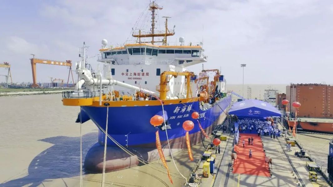 9月19日,中交上航局投资、中交疏浚国家工程研究中心总包、中国船舶集团第七〇八研究所设计、上海振华重工承建的15000方舱容双燃料动力耙吸式挖泥船“新海鲟”轮交船仪式在振华启东海工举行。