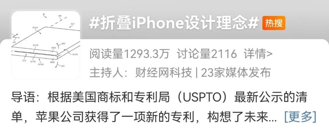 就在9月20日,#折叠iPhone设计理念#冲上热搜。据报道,苹果公司获得了一项新的专利,构想了未来折叠iPhone的设计方案,包括固态按钮在内在所有表面实现触敏控制。