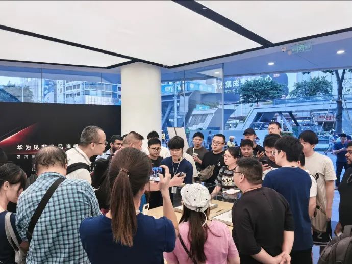 9月10日下午,华为Mate XT非凡大师一经发布,在位于深圳南山区的华为旗舰店内,已有大批市民在排队等待体验这款三折叠屏手机。