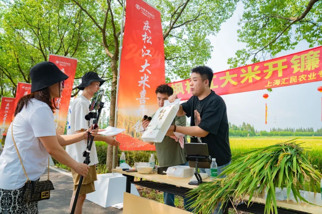 联合体对接市、区、镇各级媒体平台,举行大米开镰等活动,自2022年起,与东方购物电视频道合作,在开镰当天进行现场直播预售,为观众讲解松江大米的优势特点,让消费者直观地看到松江大米产业链的一环,吸引观众争相订购,“当时大米都卖空了”。