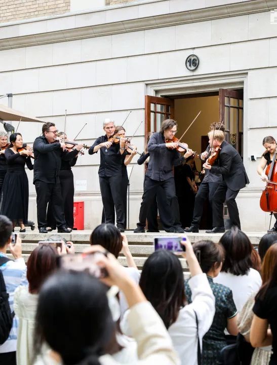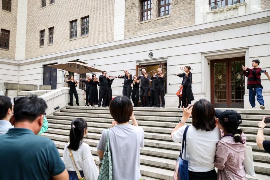9月22日下午,挪威室内乐团结束完下午的音乐会,来到上海音乐厅户外,为等候的乐迷随机快闪演奏《霍尔堡组曲》片段,送上了一段特别的“返场”。