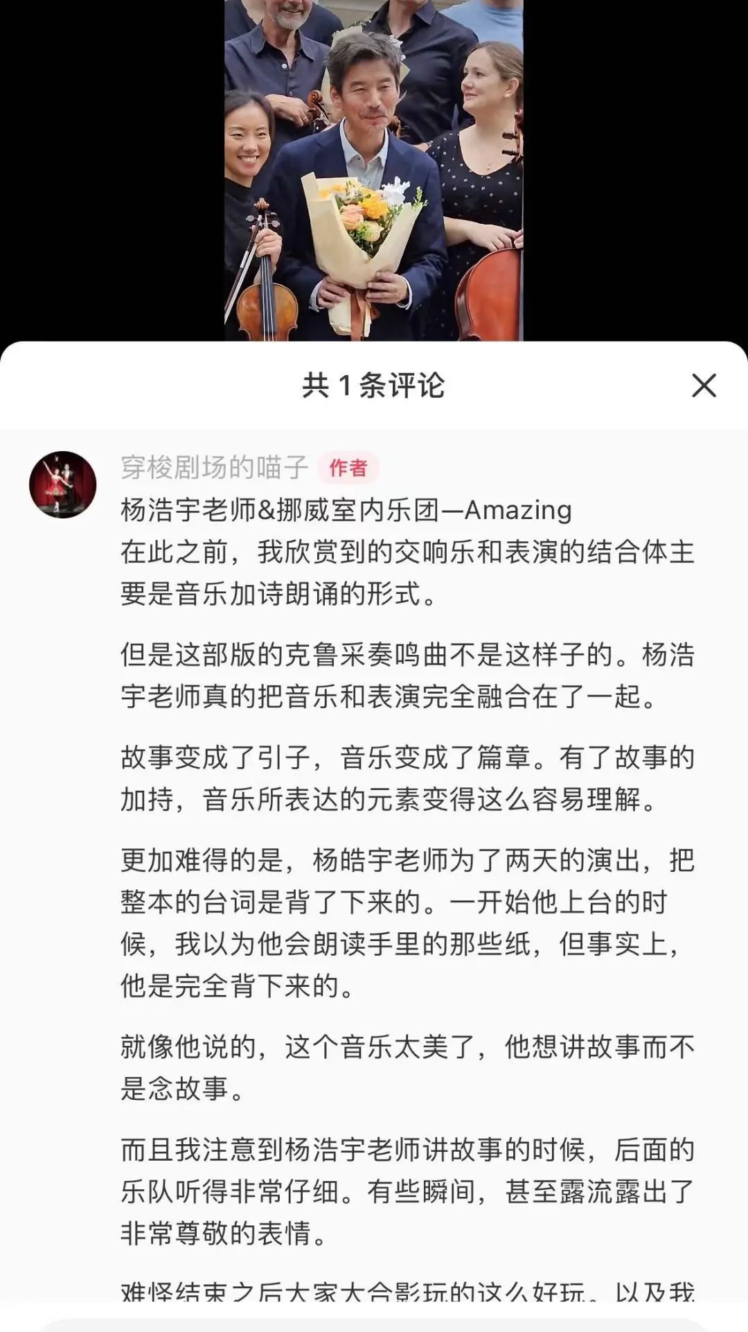 杨皓宇老师真的把音乐何表演完全融合在了一起,故事变成引子,音乐变成了篇章。有了故事的加持,音乐所表达的元素变得这么容易理解。