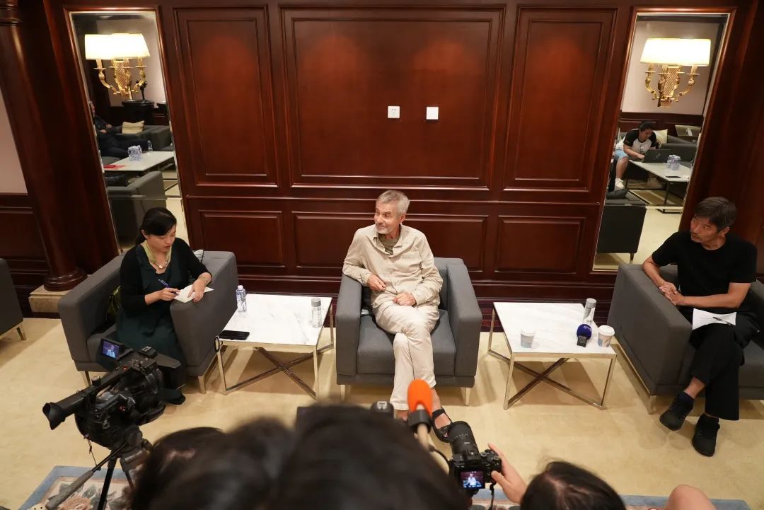 演员杨皓宇与挪威室内乐团荣誉领袖泰耶·滕内森演前接受媒体群访