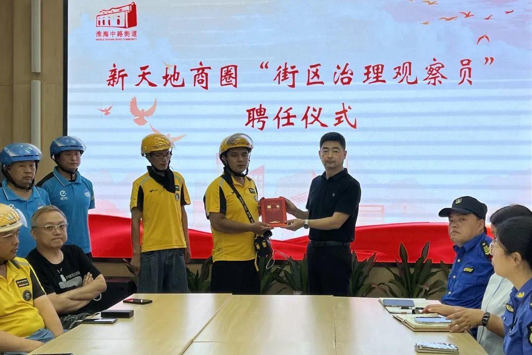 凝聚新就业群体中骨干力量,发挥外卖骑手的“熟门熟路”优势和“城市探头”作用,新天地商圈党支部联动饿了么和美团,首期聘用10名外卖小哥作为街区治理观察员,将覆盖对象转化为治理力量。自8月上任以来,观察员们带动了一批外卖配送员参与到新天地区域非机动车管理中来,提供了26条街区安全隐患或治理线索。