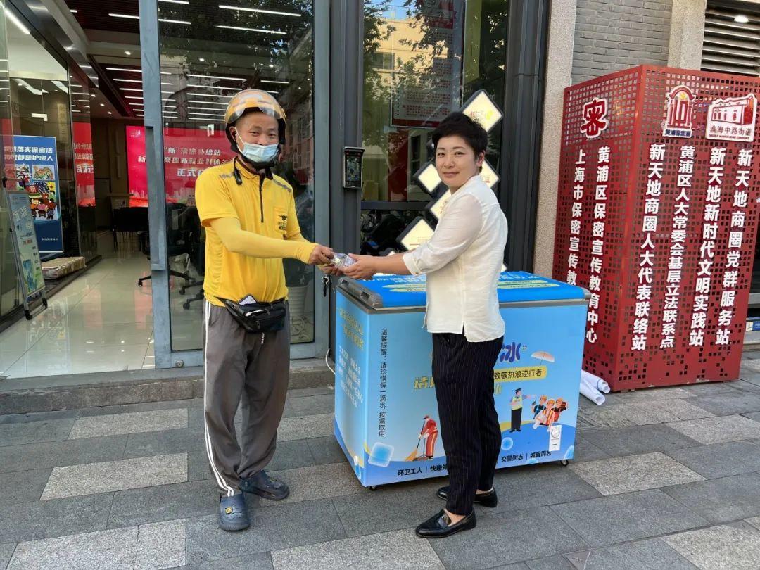 炎炎夏日,街道在三个街区党群服务站上线“新就业群体送青年——特种‘冰’”冰柜,方便快递、外卖等户外工作取水降温。街区党支部面向“两企三新”党组织和党员发起“兴业公益·党员捐瓶水”倡议,20余家“两企三新”党组织、40多位党员纷纷加入爱心接力,总共募集到8000元、121箱水,新增了8个楼宇饮水点,累计提供饮水服务12010人次。
