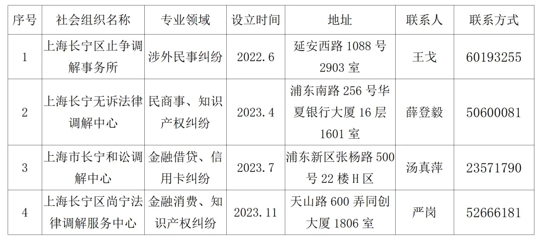长宁区商事调解机构一览表