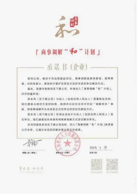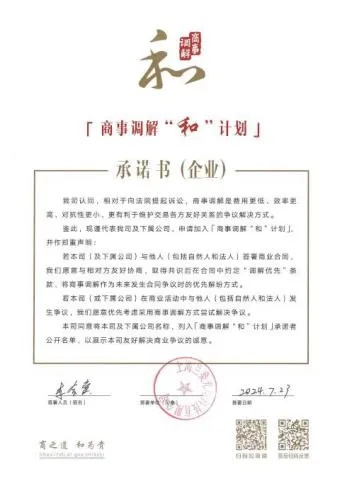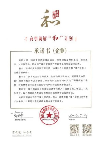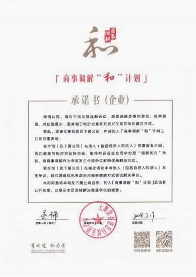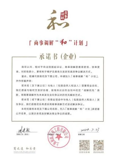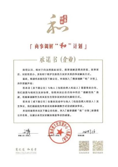 商事调解“和”计划承诺书签约