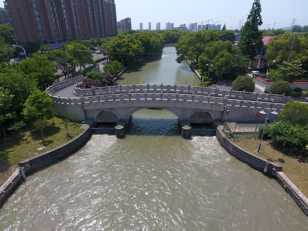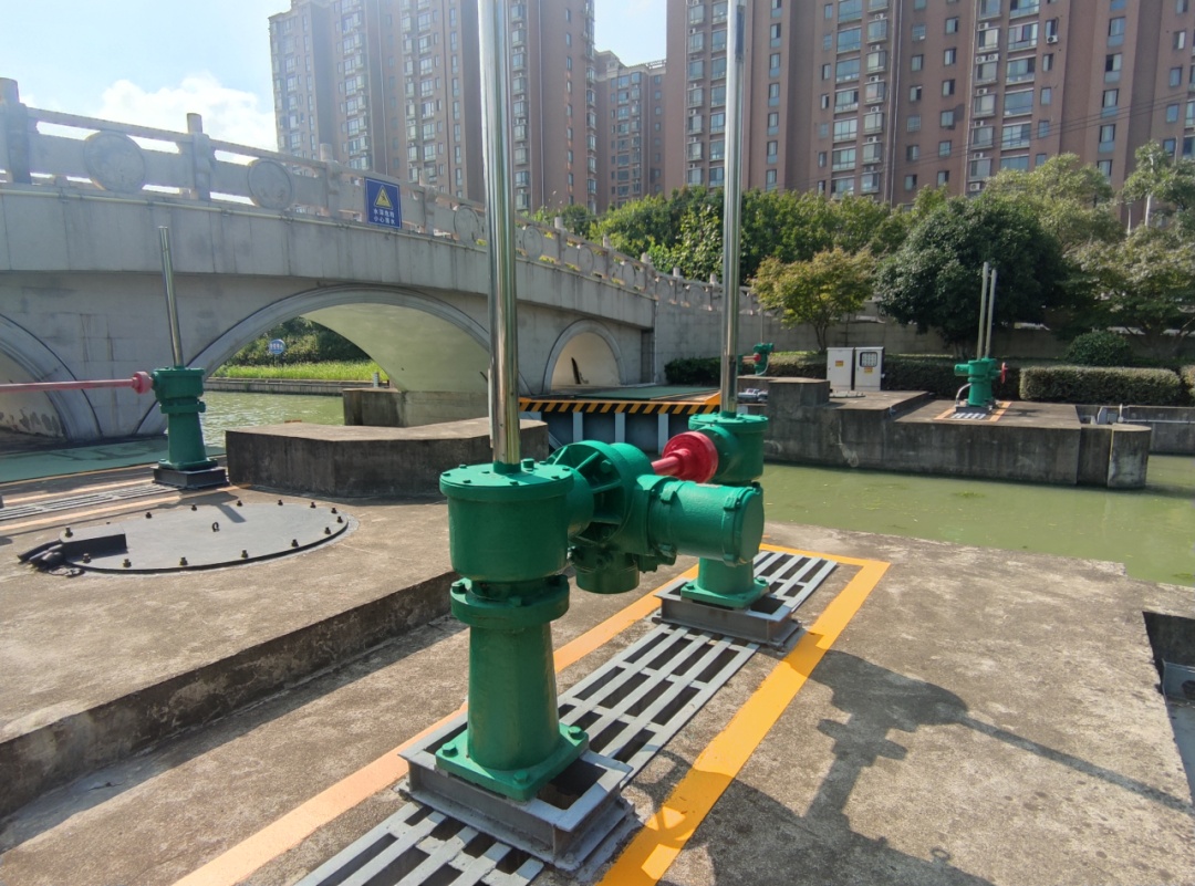 银河,位于松江新城北片区域,东起通波塘,西至辰山塘,全长4.6公里,是一条东西向引排水骨干河道和生态水利景观河道。银河东泵闸坐落于松江新城银泽路北,银河与通波塘交汇处,服务于总面积约20876亩的新城北圩区,发挥着挡潮、排水、水资源调度等作用。银河东泵闸与银河一起构成了维系城市水安全的防线,确保区域水系的稳定与安全。