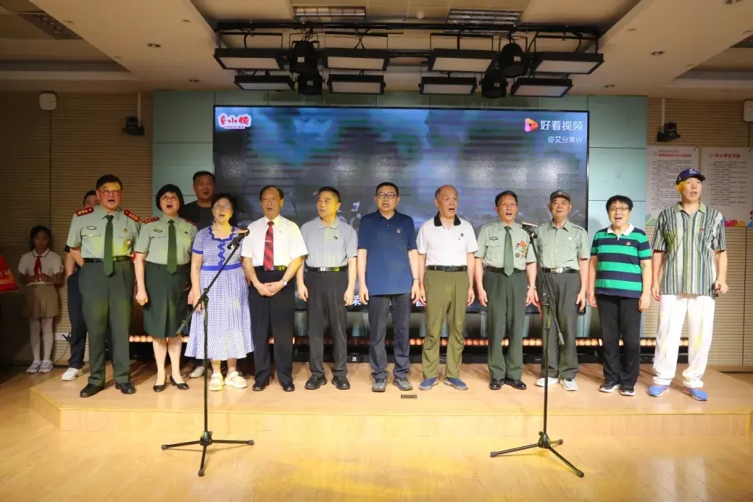 仪式结束后,上海市新四军历史研究会三师分会的老师和龙南少年军校的“小龙囡”们共同呈现的一堂情景德育课拉开帷幕。上海市新四军历史研究会三师分会普陀铁军合唱团带来《新四军军歌》,铿锵有力的歌声体现了新四军战士们的艰苦斗争和坚定信念;“小龙囡”们再现了《血染北秦庄》故事,展现了华中鲁艺师生们英勇无畏的精神和坚定的革命意志。