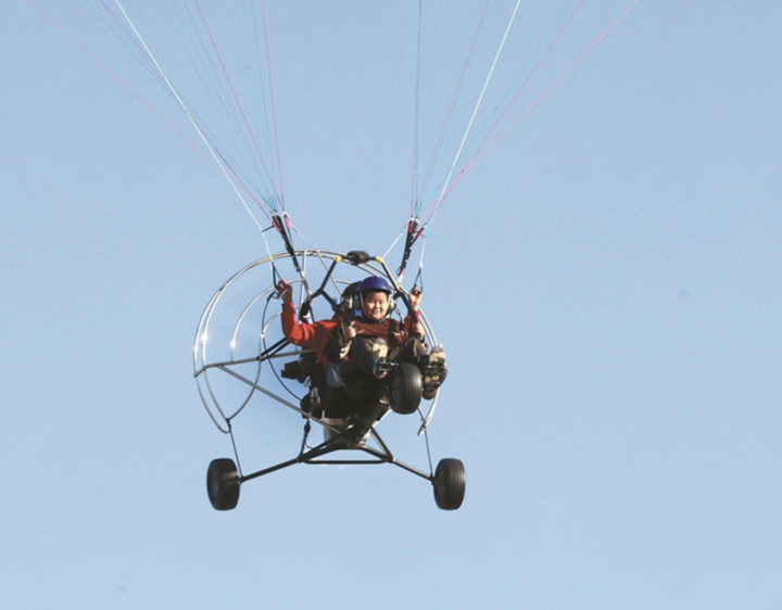 10月4日,游客在沭阳花海航空飞行营地乘坐动力伞观赏美景。丁华明 摄 (视觉江苏网供图)