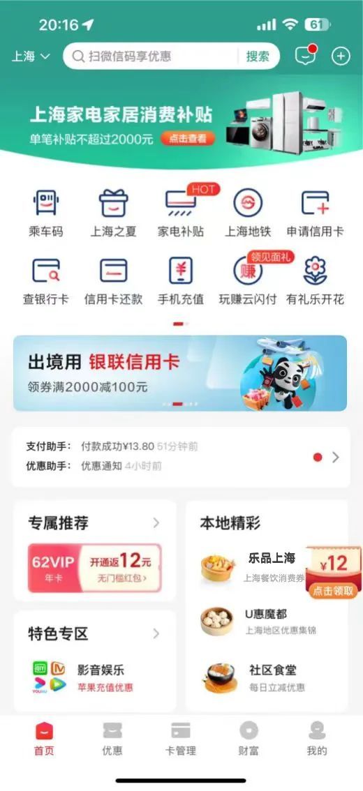 活动期间,消费者通过云闪付APP“本地精彩”专区“乐品上海”或在主页搜索“乐品上海”进入活动页面。