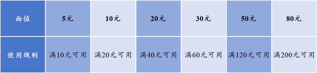 (一)券面规则。一是满300减50,二是满600减130,三是满900减220,四是满1200减300。