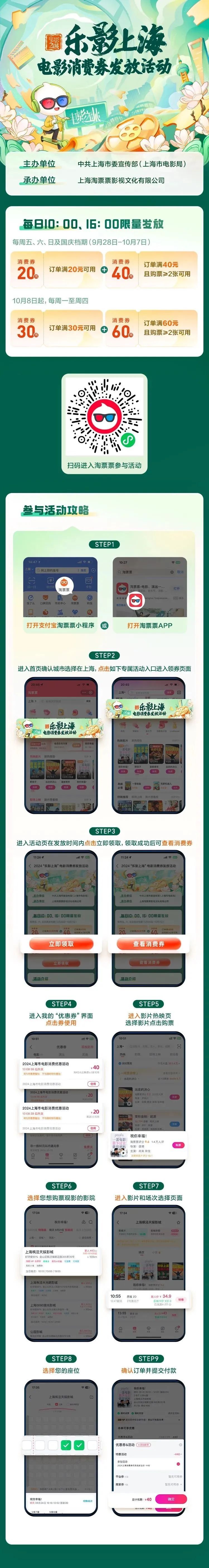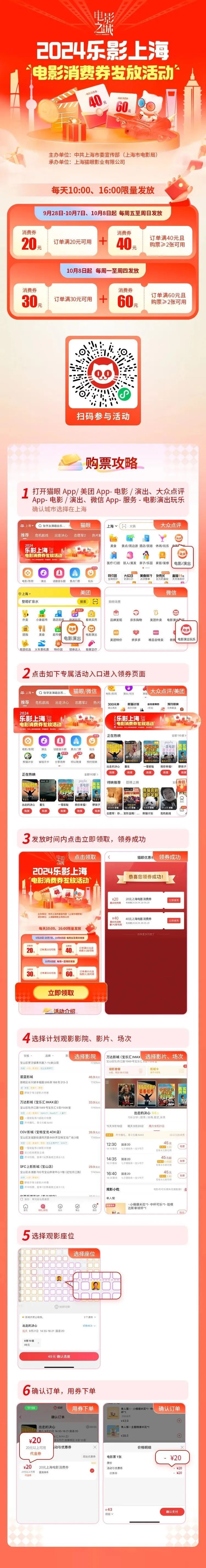 此外,2024“乐影上海”电影消费券,每天10:00/16:00持续发放,大家可以去猫眼、淘票票等平台领取。“乐动上海”体育消费券仍在每天8点、12点、18点三个时段发放。详见↓