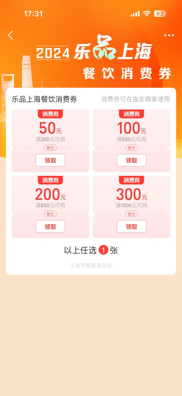 在活动页面选择1张想要领取的消费券,点击“领取”即可完成。