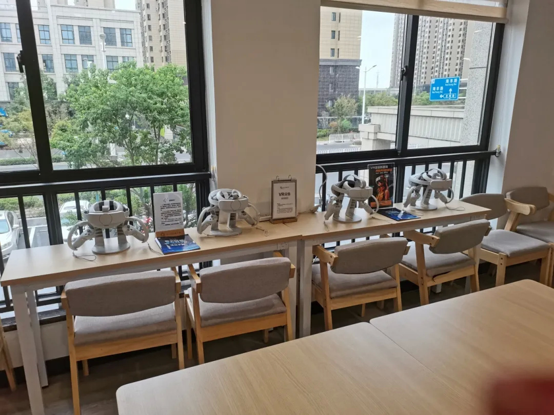 除了传统的图书功能区域外,海璟分馆新增设一块下沉阶梯式公共读书区域以及VR阅读体验区,VR阅读让阅读模式不再局限于传统纸质数据和平板,而是通过虚拟现实设备采用互动、点击等动作,为儿童带来个性化阅读体验,并且使用简易、沉浸感好、资源丰富,将平面书本立体化,一键即可开启虚拟空间阅读世界。