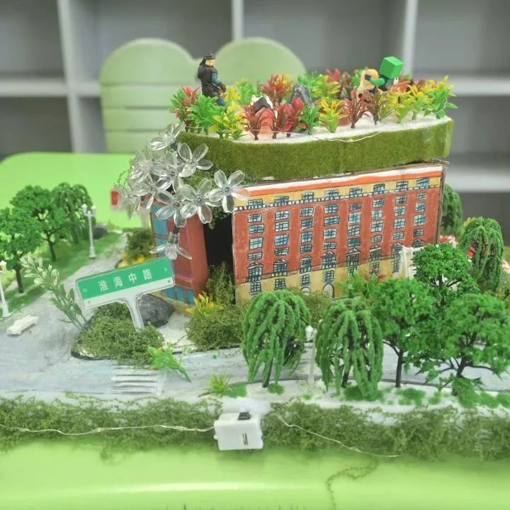 超轻彩泥、3D打印、手绘图纸、废物利用……团体组自主设计的武康大楼微景观则充分发挥了孩子们的动手能力和想象力,可谓天马行空、妙趣横生。