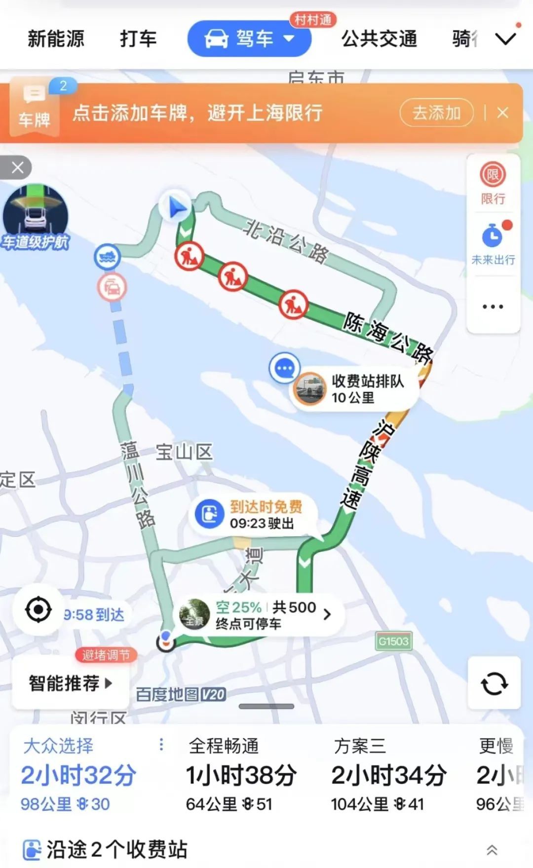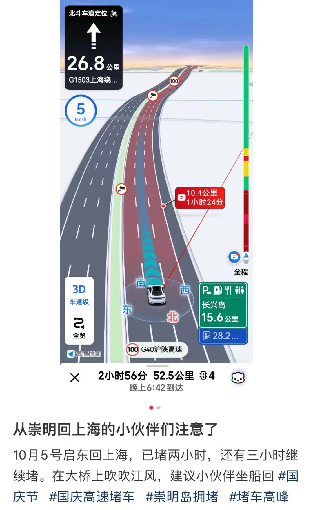 在崇明回市区的路上堵住了!