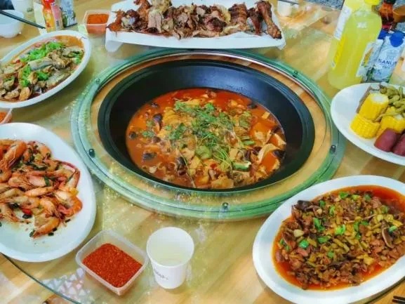 听老板和我们说,现在越来越多的人从市区自驾游,奔的就是这土灶台烹制的美食,尤其春节的时候,人气更旺,看来我们运气还算不错。当晚这土灶美食就上了我们餐桌,土灶慢焖出来的咸肉菜饭听说是必吃TOP榜首,嫩绿的小青菜、红润油亮的咸肉、喷香软糯的米……还有土锅炖鸡、土锅炖鱼,一口下去味蕾大满足,尤其是土锅焖煮留下的锅巴,脆脆香香,上海本地朋友大为推荐,说这就是他小时候的味道。肴核既尽、杯盘狼藉就是对食物最好的赞赏。亲子活动、团建聚会、求婚布置……小院故事多,充满喜和乐,此刻,蓝牙音箱播放着《苏州河上一座桥》的曼妙旋律,“苏州河上一座桥,烟波倒影摇啊摇,心在这边梦在那边,一河春秋漂啊漂……”窗外繁星点点,窝在软和的被子里,寻求到了身与心的极致放松。