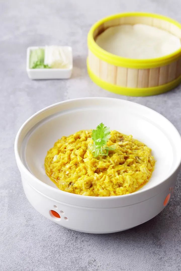 绿波廊有一道招牌菜——清炒蟹粉包春饼,被无数中外食客所称赞。这道菜品选用每日新鲜手工拆蟹取蟹粉,确保每一口都能品尝到蟹的鲜味,清炒做法则尽可能保留蟹粉的原汁原味。吃时搭配刚刚蒸制好的春饼,柔韧软弹,卷上搭配的黄瓜、京葱丝等,犹如北京烤鸭的吃法增添口感,让人更能品鉴到蟹粉的美味。