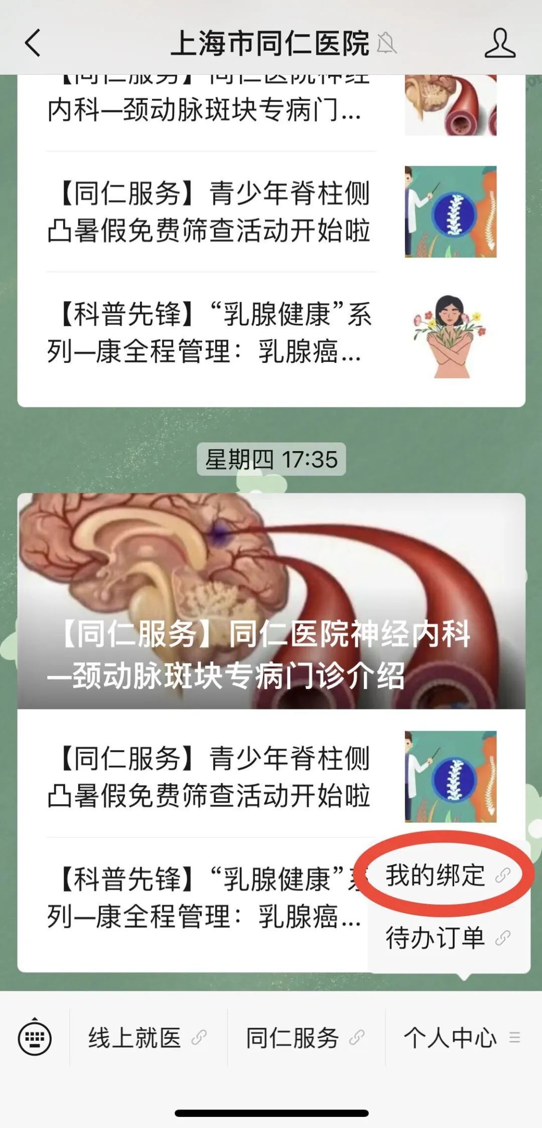 关注医院公众号,