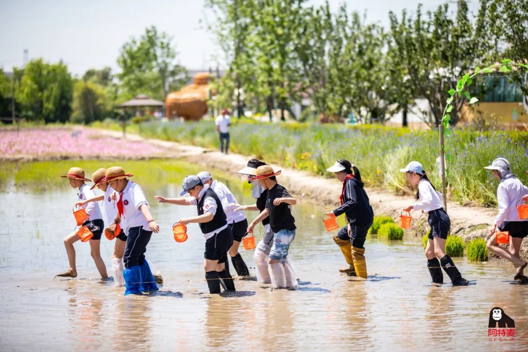 无论是周末还是工作日,园区里总能看到孩子们的身影,农事课堂上,小朋友们戴着彩绘草帽,聚精会神地听着老师讲解,从水稻的生长周期到农民的辛勤付出,孩子们听得入迷,仿佛自己也化身为那一颗颗宝贵的种子,体会着收获的不易。课后,孩子们穿上小雨靴,踏入泥泞的稻田,亲身体验插秧的艰辛。在“浑水摸鱼”环节,孩子们在清凉的池塘中追逐嬉戏,欢笑声更是此起彼伏,此时,孩子们收获的不仅是农田间的乐趣,还有对自然的感悟。