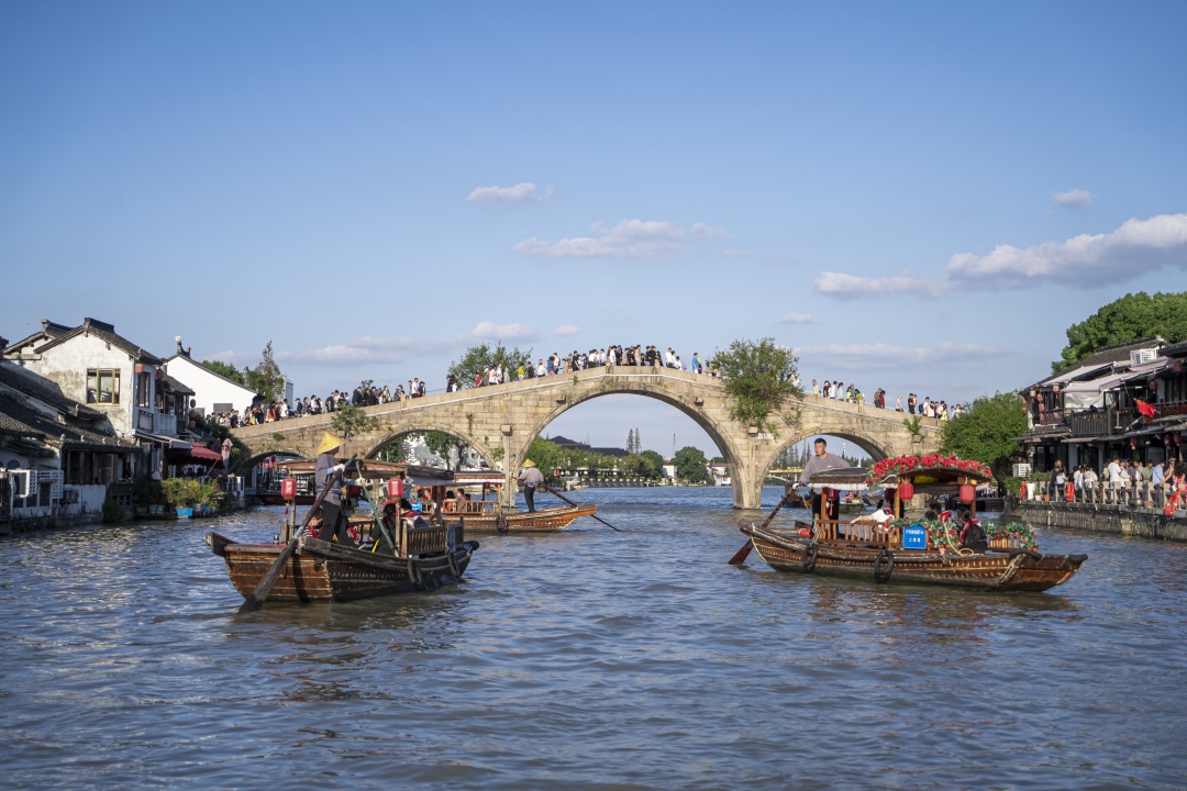 谭盾实景水乐·流动建筑《水乐堂·天顶上的一滴水》在国庆期间上演。张军团队精选实景昆曲《牡丹亭》片段,走出园林,或对亭台、或倚水榭,开启昆曲快闪,通过沉浸式的体验让游客“秒”入戏。假日七天,朱家角古镇共计接待游客27.89万人次。