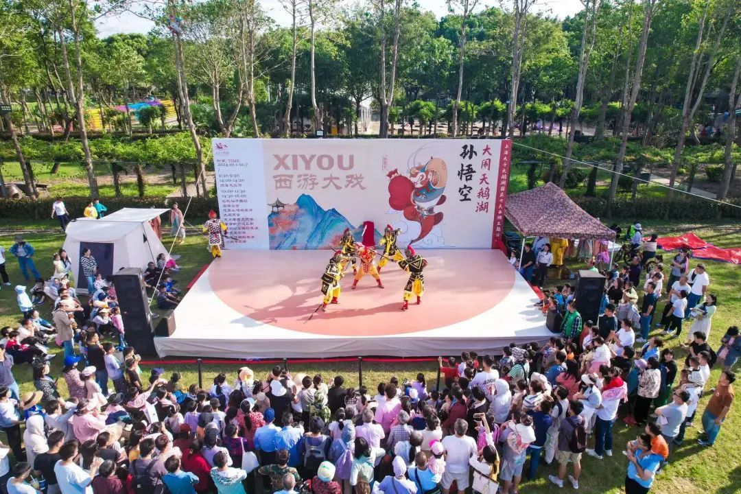 上海大千天鹅湖庄园举办大千天鹅湖国庆西游主题活动——孙悟空大闹天鹅湖,集巡游互动、西游众人绝活上演、小妖怪市集、西游场景复刻打卡等于一体的《西游记》主题节日活动,带来奇趣体验,让市民游客玩得不亦乐乎。