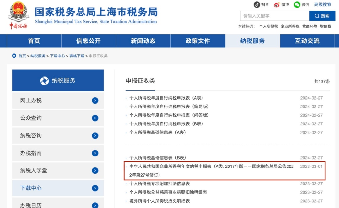 表格可在上海市税务局网站下载中心下载《中华人民共和国企业所得税年度纳税申报表》(A类,2017年版——国家税务总局公告2022年27号修订),附件中包含《研发费用加计扣除优惠明细表》(A107012)。