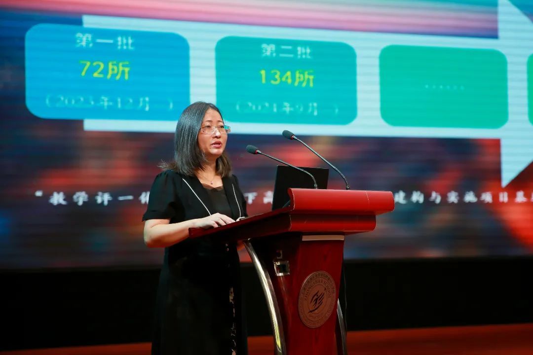 上海市教师教育学院(上海市教育委员会教学研究室)科研部部长王月芬作了题为“教-学-评一体化”理念下高质量作业体系建构与实施的报告,聚焦建构各学科的高质量作业体系、提升从设计到实施全流程质量、攻关突破作业改革重难点问题、探索数智化场景下的作业改革、加强基于实施效果的实证研究、推进学校教师常态化有效实践等重点,介绍了前期的工作成效和下一步的计划。