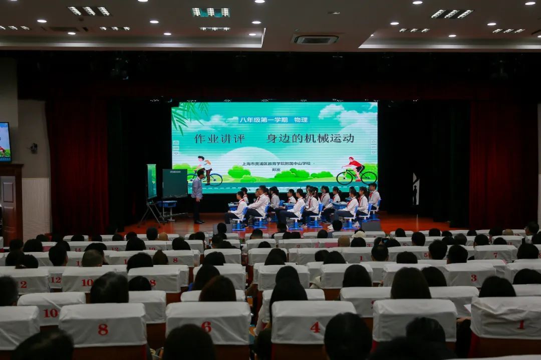 在黄浦区教育学院附属中山学校的初二课堂里,物理老师郑富正在为学生上一堂作业讲评课。