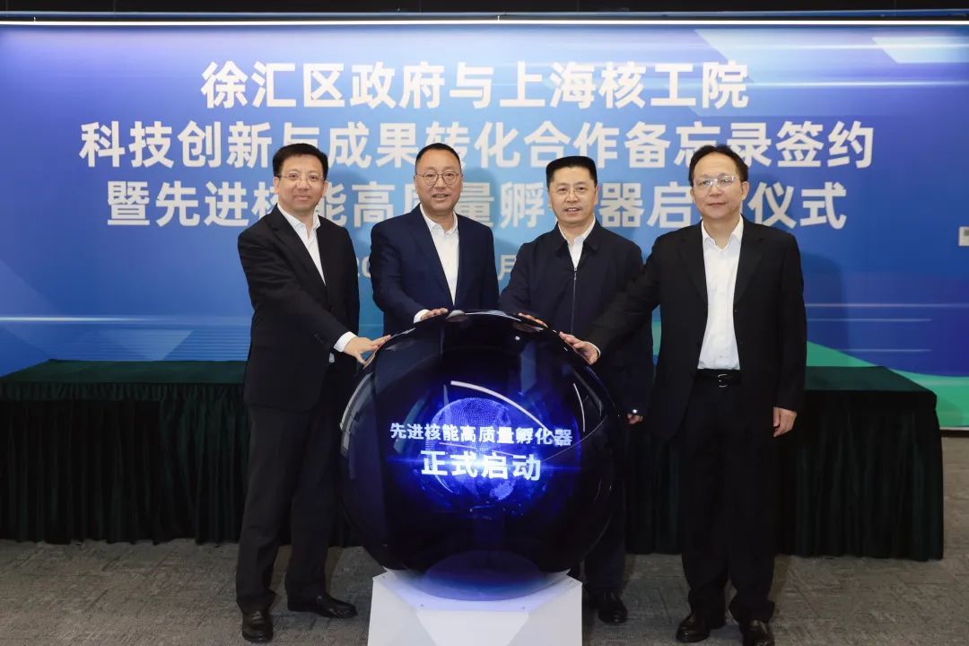 徐汇区委书记曹立强,徐汇区委常委、副区长俞林伟,上海核工院董事长卢洪早,上海核工院党委书记、工会主席叶元伟共同启动运行先进核能高质量孵化器。