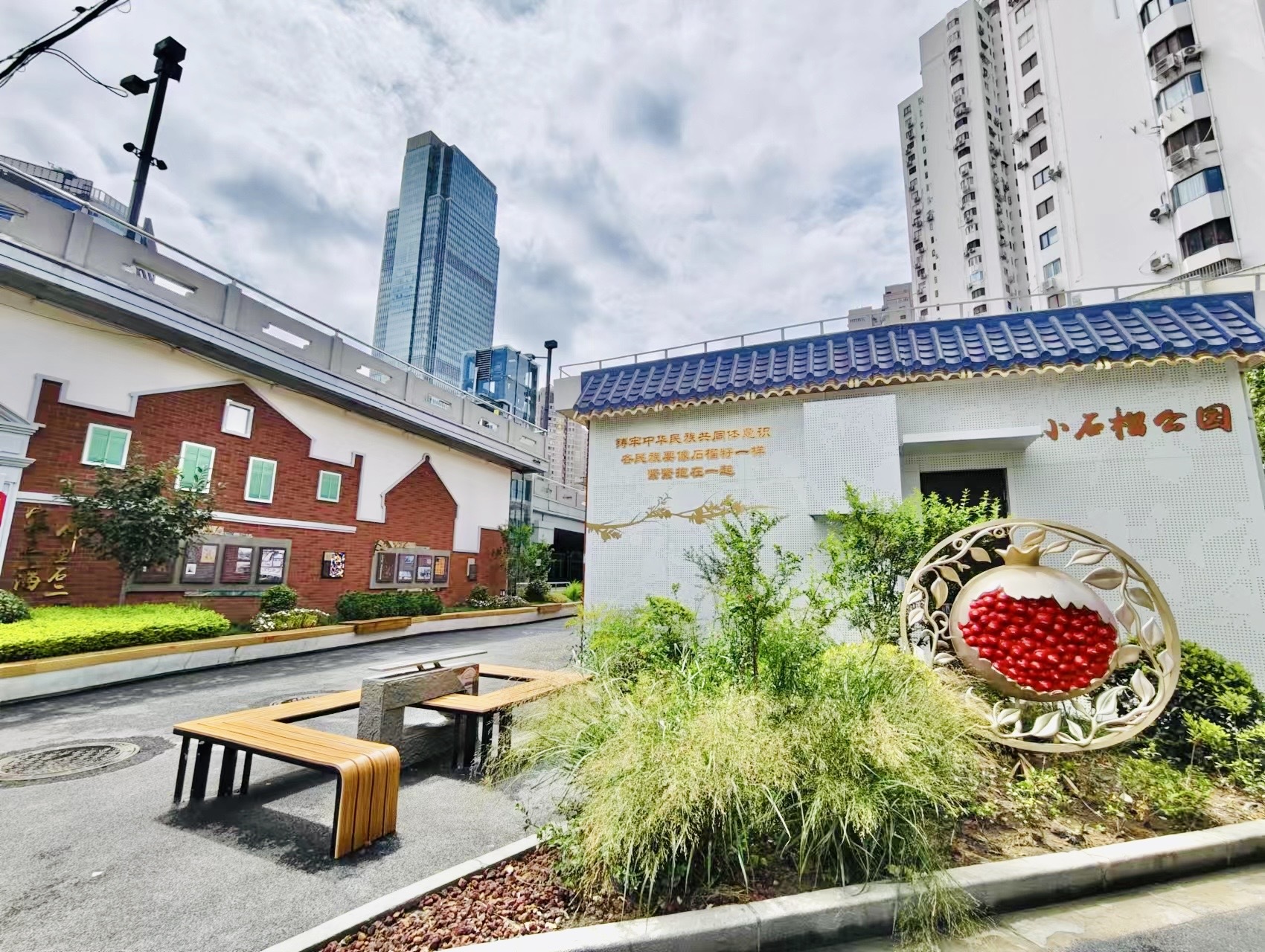 今年以来,石门二路街道通过发挥统一战线法宝作用,凝聚各界人士强大力量,助力辖区城市微更新建设,在此建成上海市首个民族团结主题口袋公园——“小石榴”公园,重新焕发出勃勃生机和满满活力,让居民群众“开窗即见绿、抬头能赏景、移步可闻香”。