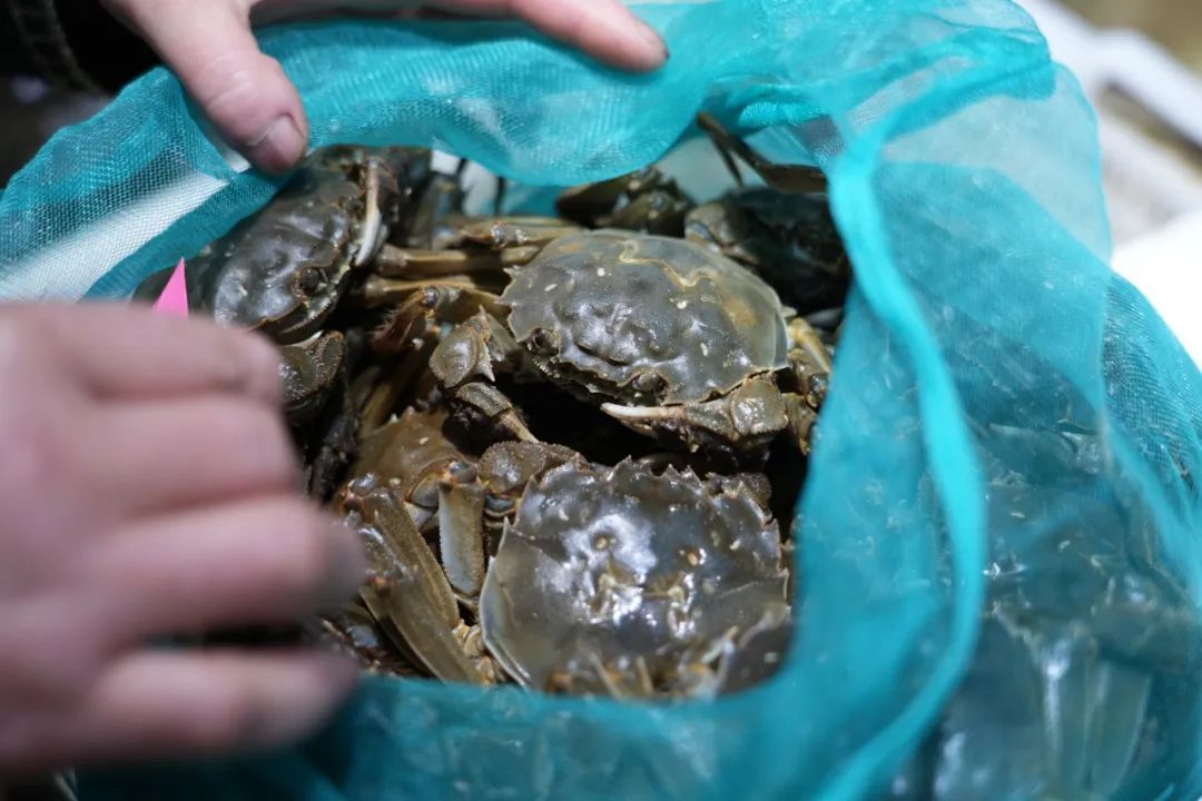 寒露刚过,此时的螃蟹逐渐变得肥美,又到了吃蟹的好时候。近日,小编走访柘林镇各农贸市场,发现大闸蟹已大量上市,成为近期市民朋友餐桌上的热门佳肴。 10月9日下午,小编走进柘林农贸市场发现,大闸蟹已经被摆放在各摊位显眼处,摊主们按大小将大闸蟹装在网兜袋里。打开袋子,一只只大闸蟹张牙舞爪、争先恐后往外爬,个个“生龙活虎”。不少市民正在购买大闸蟹。 市民桑先生表示,现在是吃大闸蟹的时候,肉厚黄多,肉质细腻,准备清蒸。 摊主告诉小编,今年的大闸蟹大多来自南京,虽然说不是阳澄湖的大闸蟹,但品种都差不多,又肥又鲜,味道一样好。挑选大闸蟹时,一要看大闸蟹的背,背甲呈青泥色,光滑而有光泽;二要看蟹肚,蟹肚白而有光泽,脐部圆润,向外隆起;三要看蟹脚,蟹脚完整、有力,关节处有弹性。满足这三个条件基本上就是一只优质大闸蟹了。 价格方面,国庆过后,大闸蟹大量上市,售价较前段时间普遍下降。“二两五的一般15元一只,三两五的卖25元一只,四两的是35元,基本都是母蟹。”摊主张女士说。 秋风起,蟹脚痒 喜欢吃大闸蟹的市民朋友 赶快安排上吧 大闸蟹虽然好吃 但不可贪多 一次一两只最合适