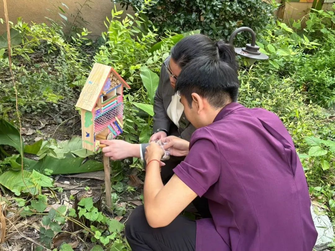 了解了昆虫旅馆的重要性后,居民们开始在老师的指导下,分组进行昆虫旅馆的组装工作。每个小组都充满了热情和创造力,在组装昆虫旅馆的同时,还为每个旅馆绘制了独特的彩绘铭牌,这些铭牌不仅美观,还具有教育意义,提醒着每一位居民和访客保护生态的重要性。