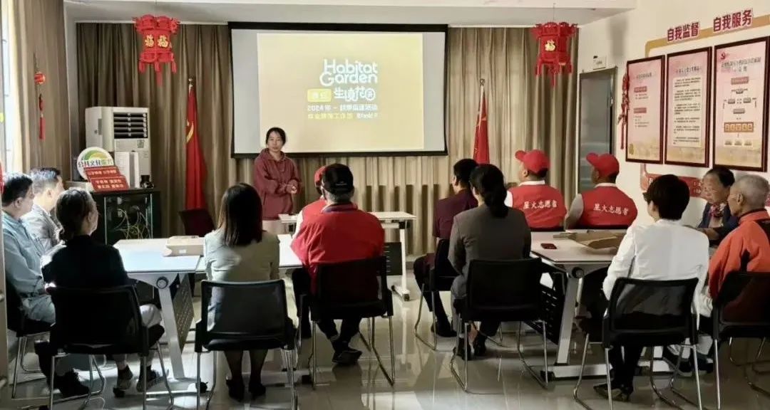 活动开始前,专业老师通过主题为“生境花园与昆虫旅馆”的PPT分享,向居民讲解了昆虫旅馆的重要性。