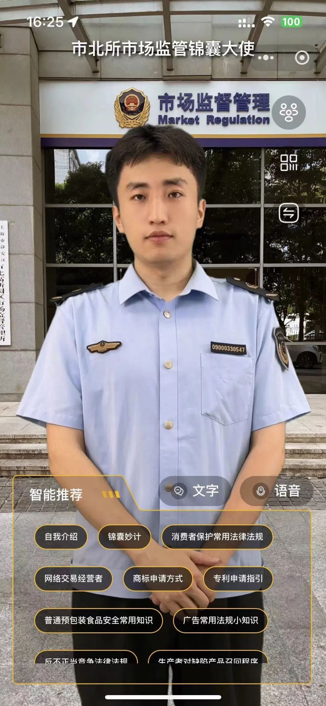 市北所市场监督管理局AI数字人“锦囊大使”
