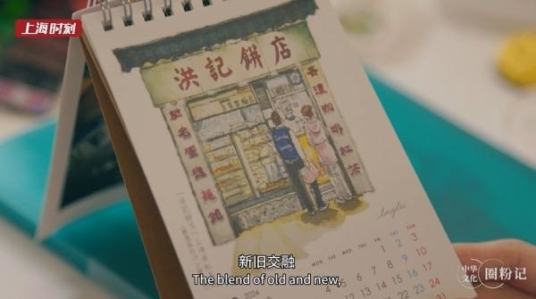 值得回味的不光是画中的城市风景,更有画外的暖暖人情。陕西南路上一家卖老式刨冰和糖炒栗子的夫妻老婆店颇受食客喜爱,在百绘的画中,这份街头好味道也被保留了下来。她将画作收录制作进台历中,并送给了店主夫妇。离开时,她的手里多了一袋香甜软糯的炒栗子,是新朋友回赠的礼物。