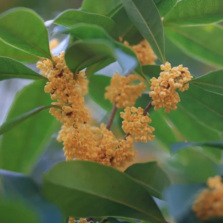 最广为人知的是四大品系,即金桂、银桂、丹桂和四季桂。金桂叶大而长,花黄香浓;银桂叶小略圆,花白香烈;丹桂叶厚而密,花红而少;四季桂叶大肥厚,花乳白而味淡,四季花香不绝。