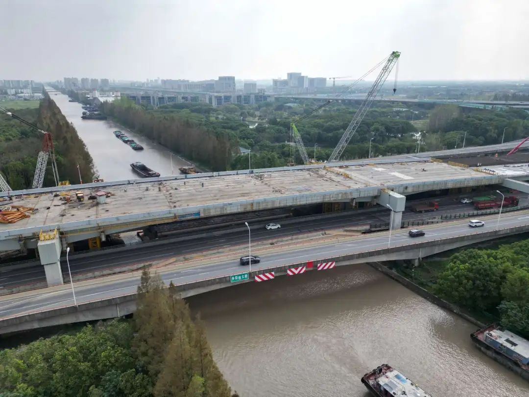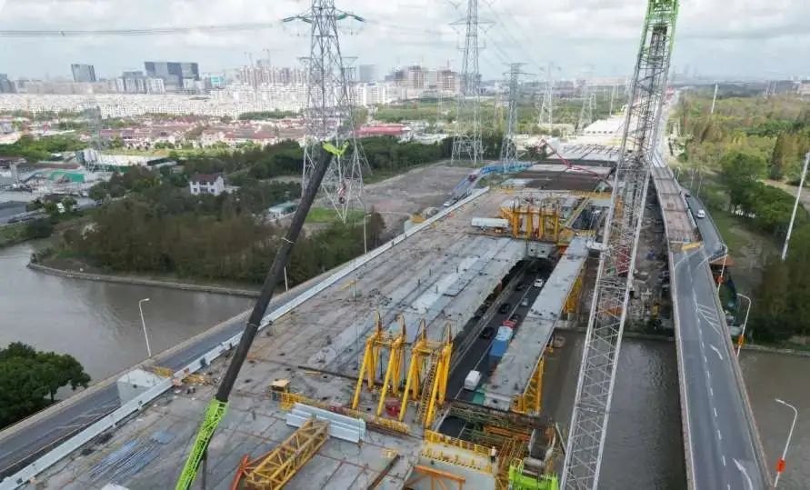 据悉,此次跨川杨河连续钢箱梁总长200米,桥梁跨径布置为55+90+55米,钢结构总重量6089吨。
