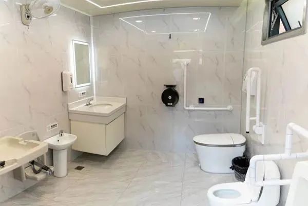 智能马桶是该公共厕所的另一大亮点。它不仅具备常规的加热座圈、温水冲洗等功能,还能根据使用者的需求进行个性化调节。每当有人离开公共厕所,系统会自动启动冲洗程序,对马桶及周边区域进行全方位清洁,确保下一位使用者的卫生安全。
