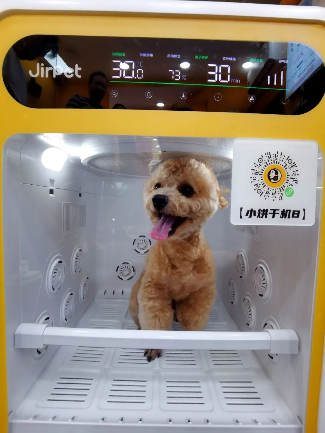据悉,自助洗宠店24小时营业,店内配备了专业的洗浴池、吹干台和烘干机。顾客只需通过微信扫码,即可进入洗浴舱。洗护流程非常便捷,首先可以用消毒喷枪对舱内进行清洁,然后调整洗浴喷头,给宠物进行恒温淋浴。吹水机和烘干机也能迅速帮助宠物干燥毛发,整个过程不超过半小时。“我们的设计初衷就是为市民提供更加灵活和便捷的宠物洗护体验。顾客只需扫码,就能使用洗浴池、吹干机和烘干机等设备,所有操作都非常简单,按时间收费,市民可以根据宠物的具体需求选择服务。”店长梁楠告诉记者。