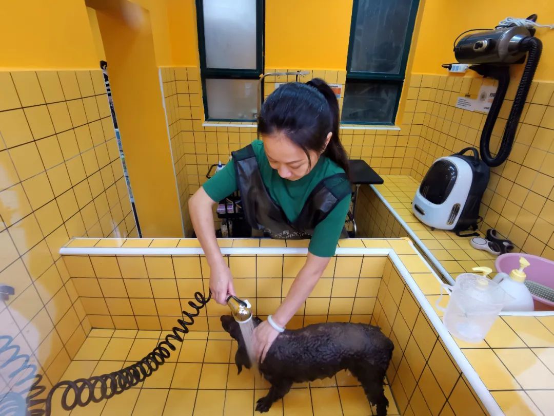 除了时间上的灵活性,自助洗宠店的价格也较为亲民。洗浴池、吹水机和烘干机的封顶价格分别为19.9元、9.9元和9.9元,加上宠物香波套装的19.9元,整个洗护费用封顶不超过60元。而对于小型犬来说,洗护费用通常在30元左右,比传统宠物店便宜不少。
