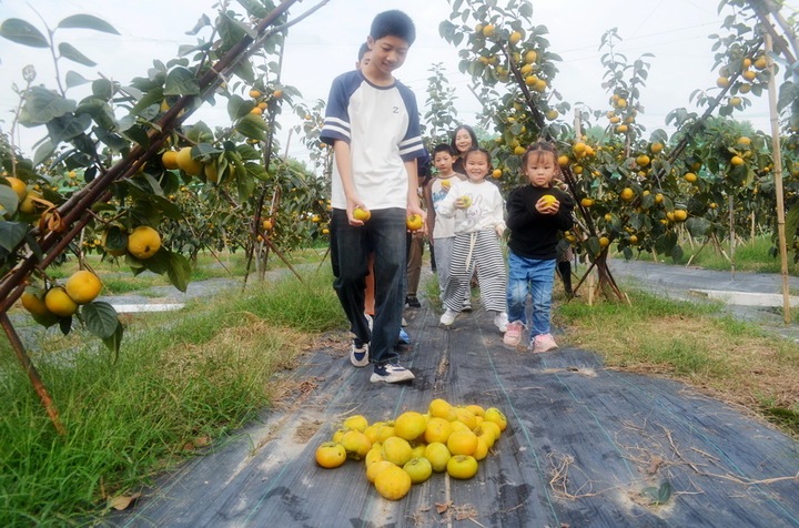 10月13日,宜兴市杨巷镇革新村的家庭农场,孩子们在父母的陪伴下采摘成熟的柿子,共同感受大自然的馈赠和亲子时光。龚建平摄