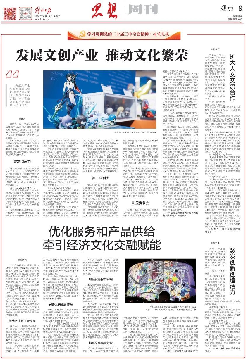 党的二十届三中全会强调,加快适应信息技术迅猛发展新形势,培育形成规模宏大的优秀文化人才队伍,激发全民族文化创新创造活力。